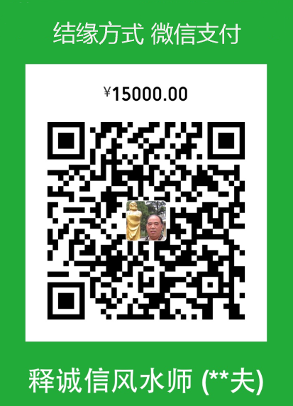 1、結緣方式:長按下面二維碼轉賬盡快與風水大師釋誠信老先生結緣,老夫可能不在線,上線后第一時間聯系您,或者敬請您添加釋誠信微信號:scx259 您若有風水方面的疑難問題時,釋誠信可以幫助您答疑解惑直到解決為止,謝謝!