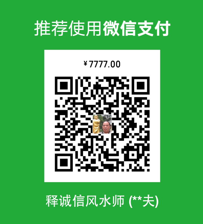 長按下面二維碼轉賬,盡早與風水大師釋誠信結緣,幫助您解決風水疑難問題,或者為您答疑解惑均可!