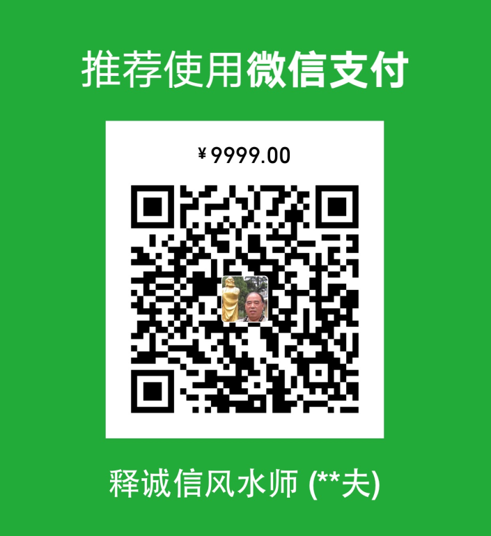 釋誠信在此,僅限有緣人,閱讀風水知識文章,閱讀進行改變命運。打賞款額為:9999 8888 7777 非常超值!可能不在線,上線后第一時間聯系您!或者您也可以通過下面的二維碼直接打款: